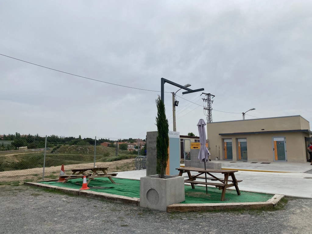 El Área dispone de baños con ducha, zonas de carga y descarga, y creo que lavadora, aunque no la llegamos a usar. En la zona de recepción también dispone de ciertos productos para comprar, pero tampoco llegamos a hacer uso de ellos.