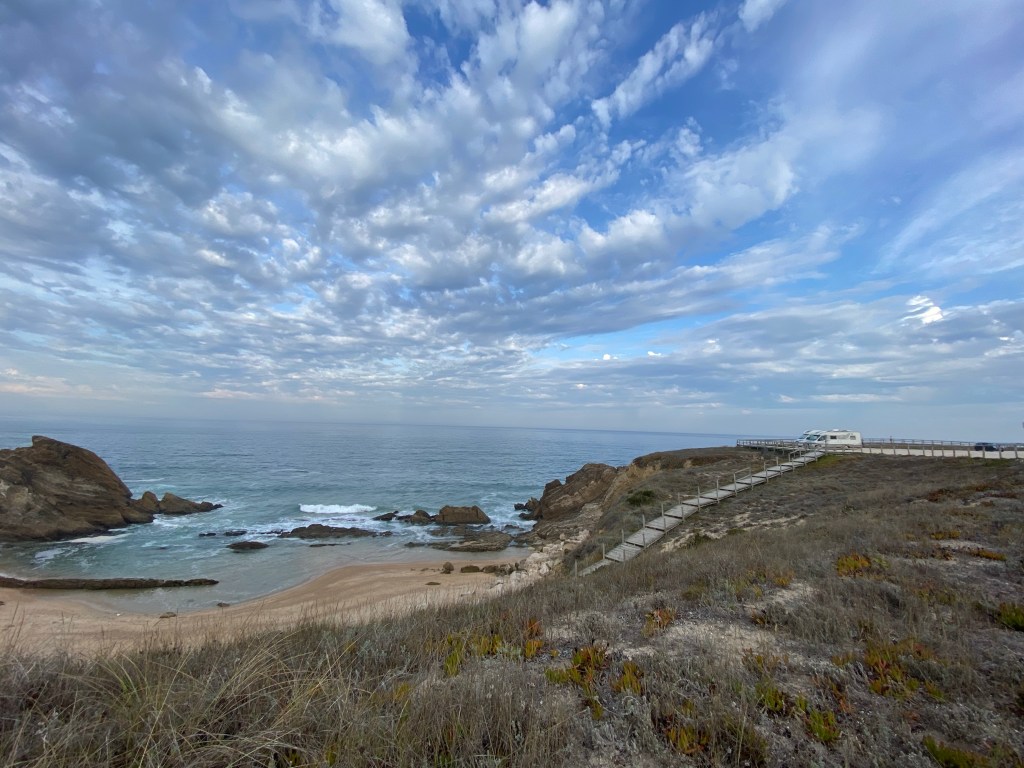 Aparcamos en coordenadas N 39.54709 W 9.11009, para pasar un día de playa, la playa esta estupenda. Hay un parking de pago, pero nos pareció muy cara habiendo hueco suficiente para aparcar fuera, supongo que también fue por la temporada del año que hubiera menos jaleo de vehículos.
