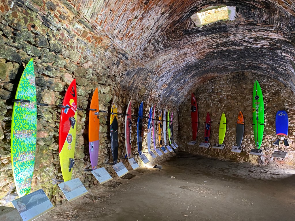 El faro es visita obligatoria, merece la pena. Había una exposición de tablas de surf, con una pequeña historia de ella y de su dueño, estaba entretenida. Y también la de un fotógrafo con unas fotos bastante impresionantes de las olas en Nazaré y de algún surfista. Eso sin mencionar las magnificas vistas que hay de la costa, tanto de la cara norte como sur.